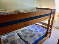 Die Obergeschoßwohnung mit 85m² und 3 Schlafräumen ist für 5 Personen ausgelegt und mit Beistellbett bis 6 Personen nutzbar.