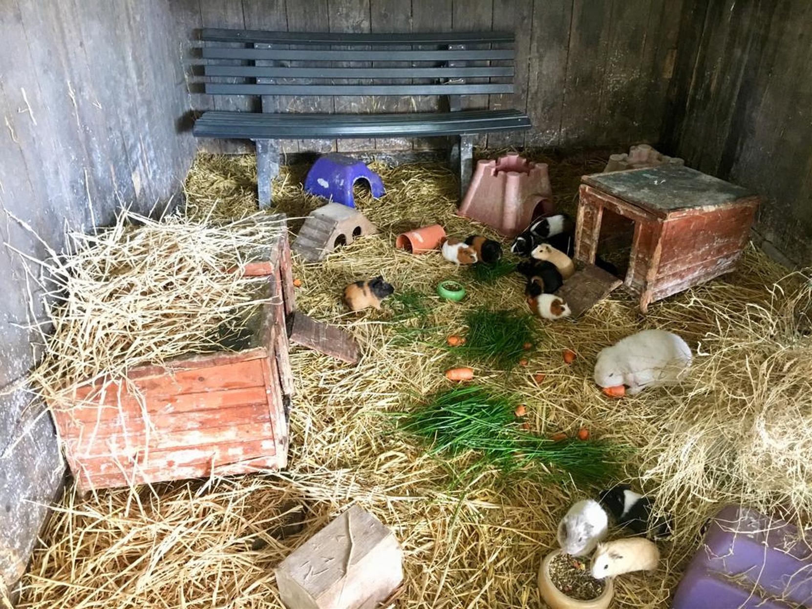 Tiere haben wir auch z.B. haben wir Rinder, Schweine, Katzen, Hühner, Meerschweinchen und Hasen.