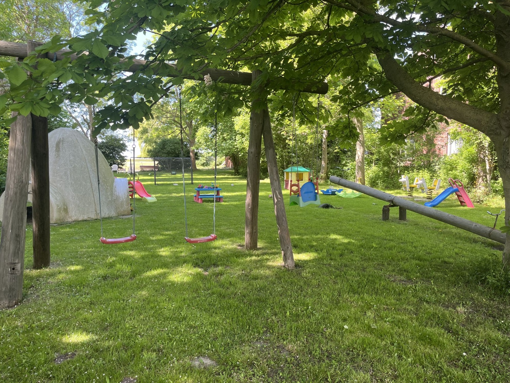Weiter haben wir einen Spielplatz mit Rutsche, Kletterturm, Schaukel, Wippen für große und kleine Kinder, ein kleines Fußballtor, Tischtennisplatte und viele weitere Spielsachen.