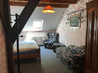 Die Obergeschoßwohnung mit 85m² und 3 Schlafräumen ist für 5 Personen ausgelegt und mit Beistellbett bis 6 Personen nutzbar.